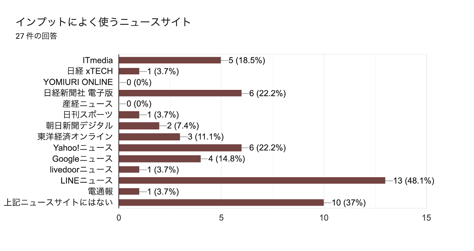 正直、これは質問項目に少し偏りが出てしまったと少し反省しております・・・ 。というのも現代は超情報社会。ニュースサイトメディアがありすぎて全てピックアップしてしまうと集計が大変なことになってしまいそうだったので、有名所を多めに入れてみました。