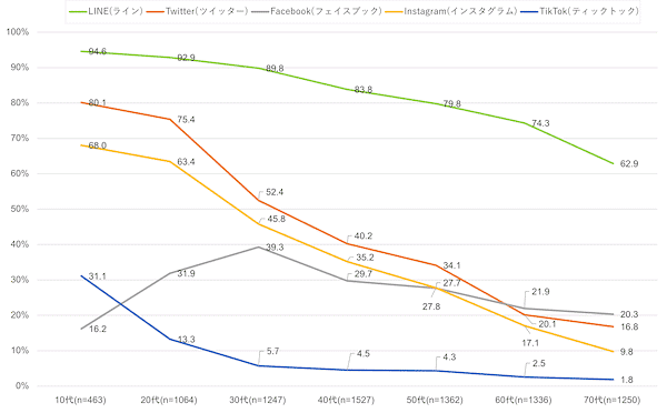 実際にNTTドコモ モバイル社会研究所の調べによると、TwitterはLINEについで使用率は2位となり、情報感度の高い10代20代も多くいますね!