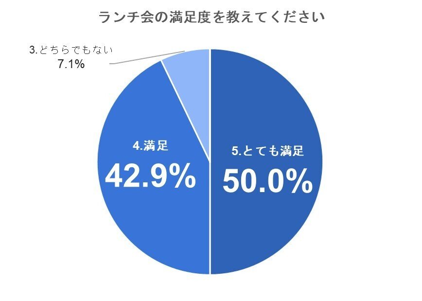 「ランチ会の満足度を教えてください」との質問に対し、以下のような結果が得られました。