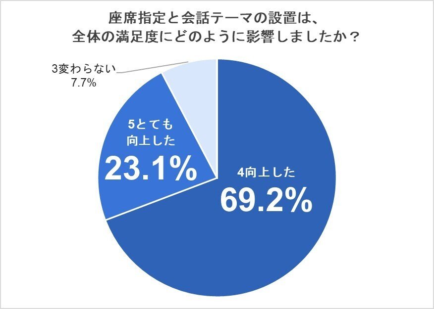 座席指定と会話テーマの設定が全体の満足度にどのように影響したかについてもアンケートで尋ねました。