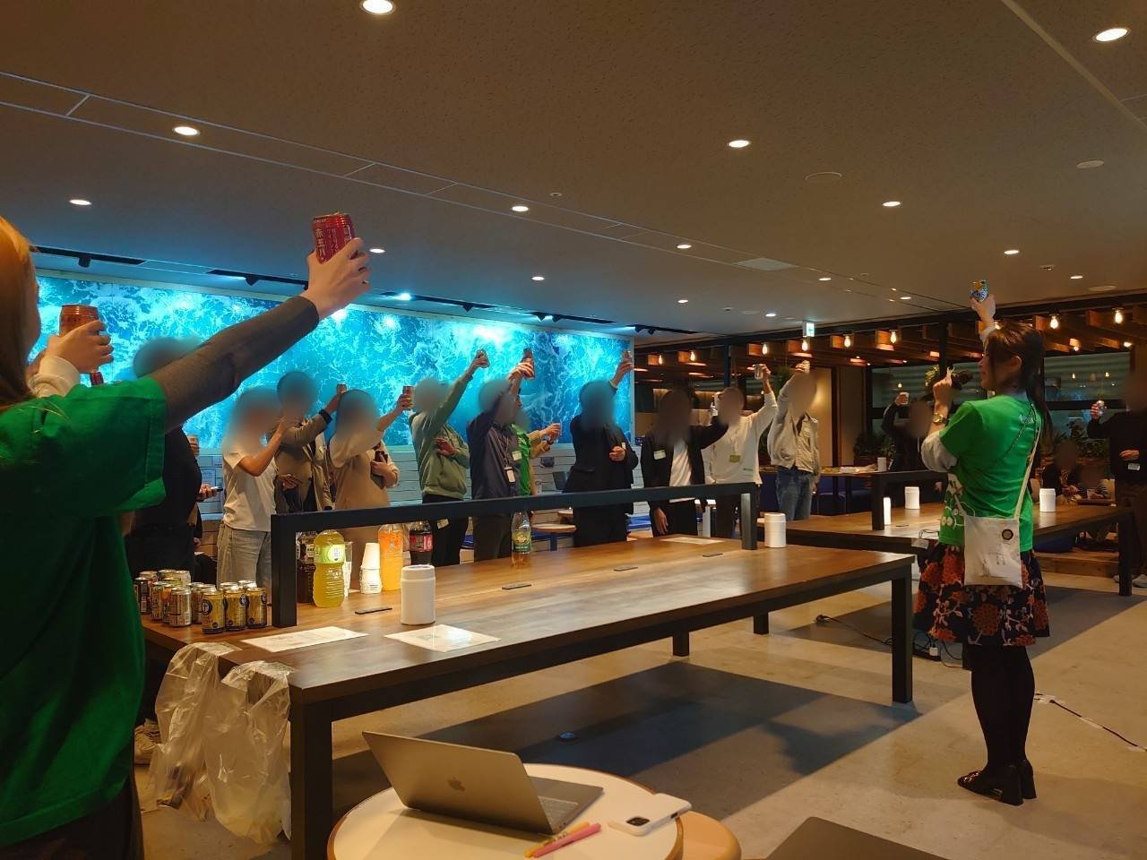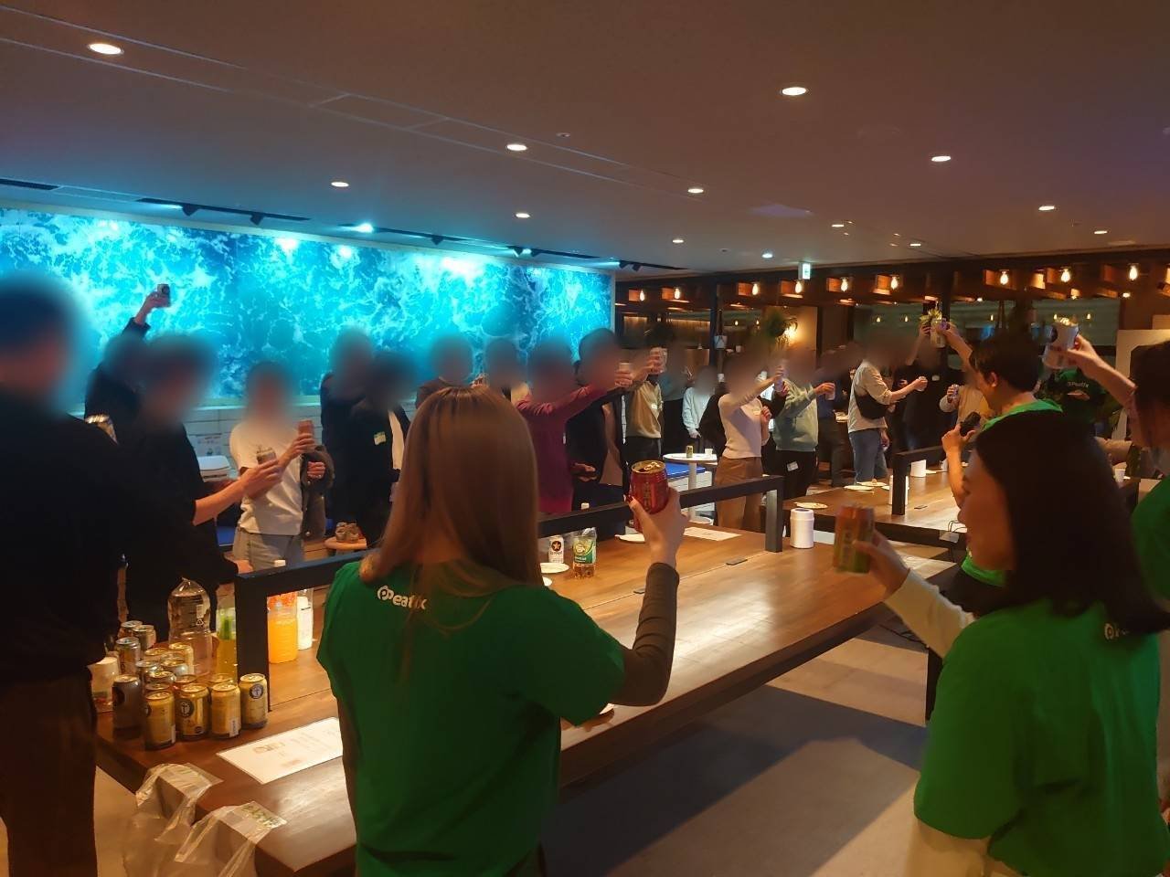 参加者の方が集まってきたところで乾杯!乾杯を合図にますます盛り上がる会場!皆様交流を楽しんでいるご様子😊そして参加者の皆様が集まったところで…2回目の乾杯~~~~~~~!!!🍻