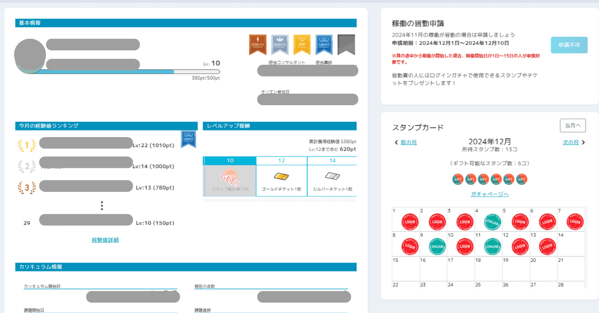 また、勉強を楽しめる機能としてガチャ機能を導入しました!勉強やスクール、社内イベントの参加でもらえるスタンプがあり、スタンプをチケットに交換することで回すことができます!
