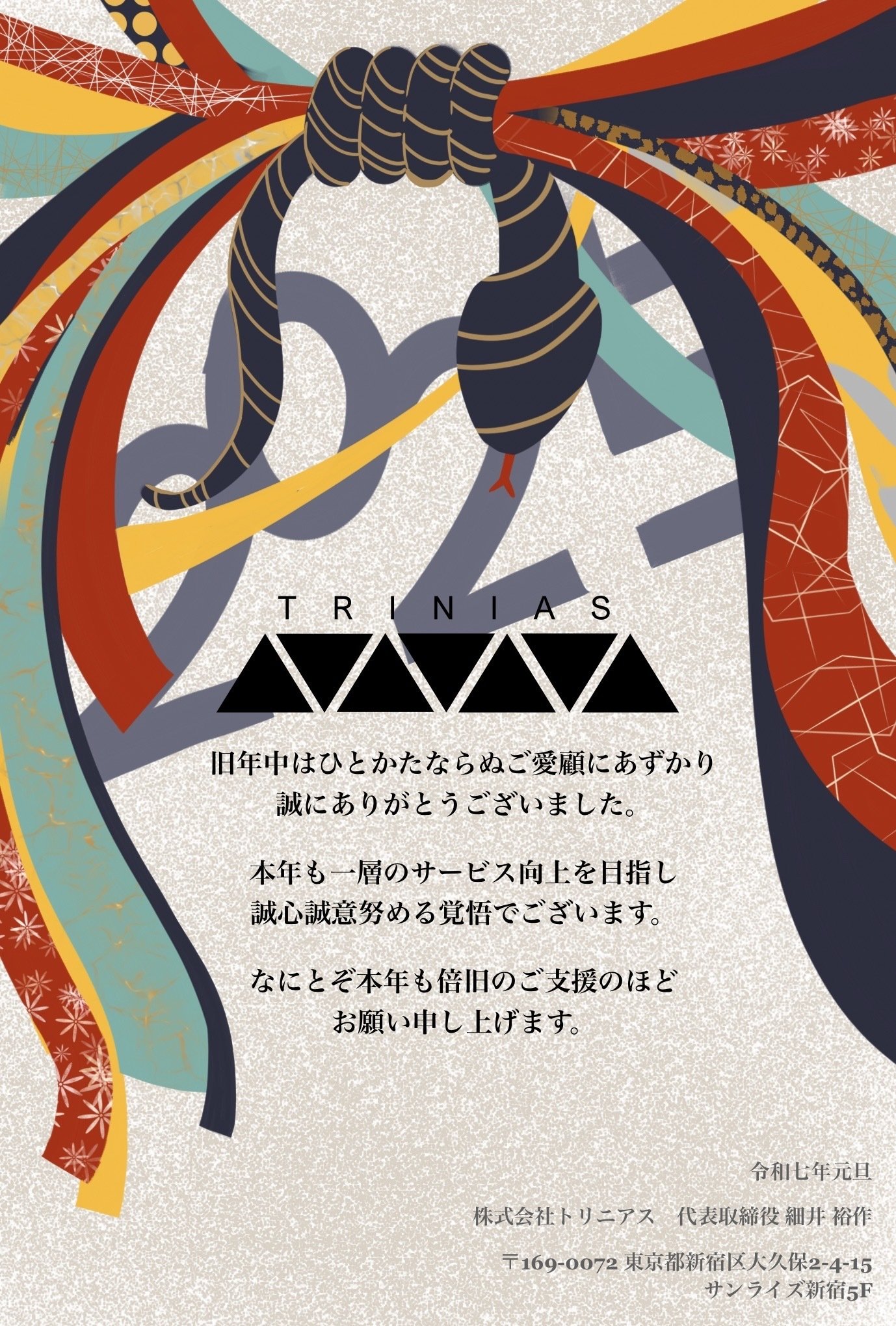 たくさんの帯が今年の干支である蛇がよって束ねてられ一つになっている様子が現在のファクタードホールディングス、トリニアス、ライフクリエイト、LULLを彷彿とさせるとでもよいデザイン!各社の想いが一つになるような素晴らしい作品ですね!