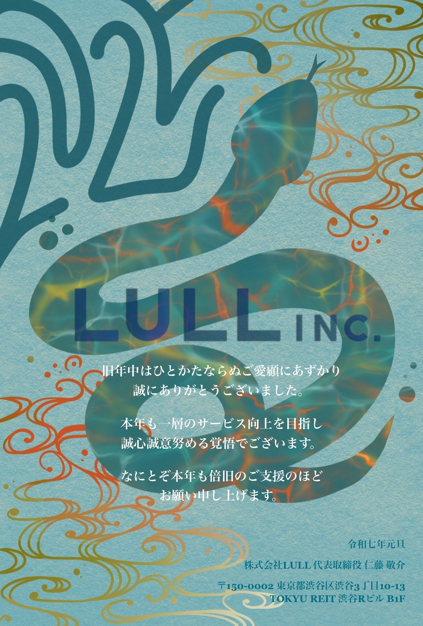 LULLのイメージカラーといえば青!!そんな青をたくさん使い色使いも明るすぎず、暗すぎずなシックな色合いでお正月にぴったりの配色!登りあがっていく様に見える蛇のデザインが2025年のLULLを勢い付けてくれそうですね!本当にありがとうございます!