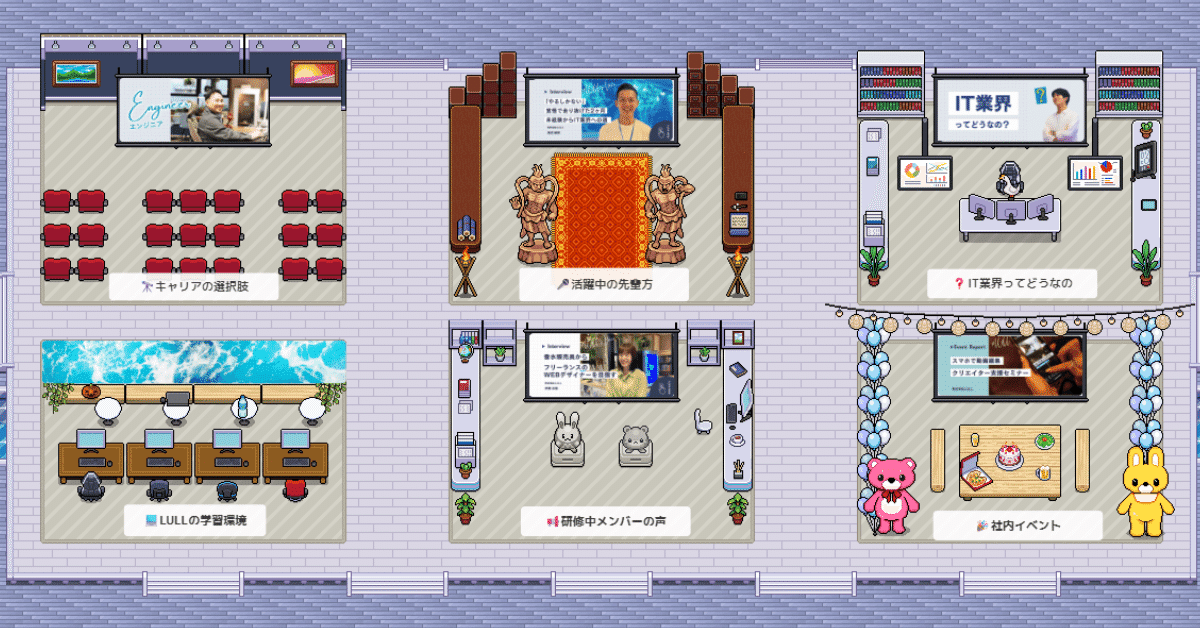 バーチャル空間内で、LULLのスタッフと直接“話せる”時間帯です。「転職活動ってどう進めた?」「未経験からどんな勉強をした?」など、気になることを気軽に相談できます!不安や疑問をその場で“話して”解消できます。
